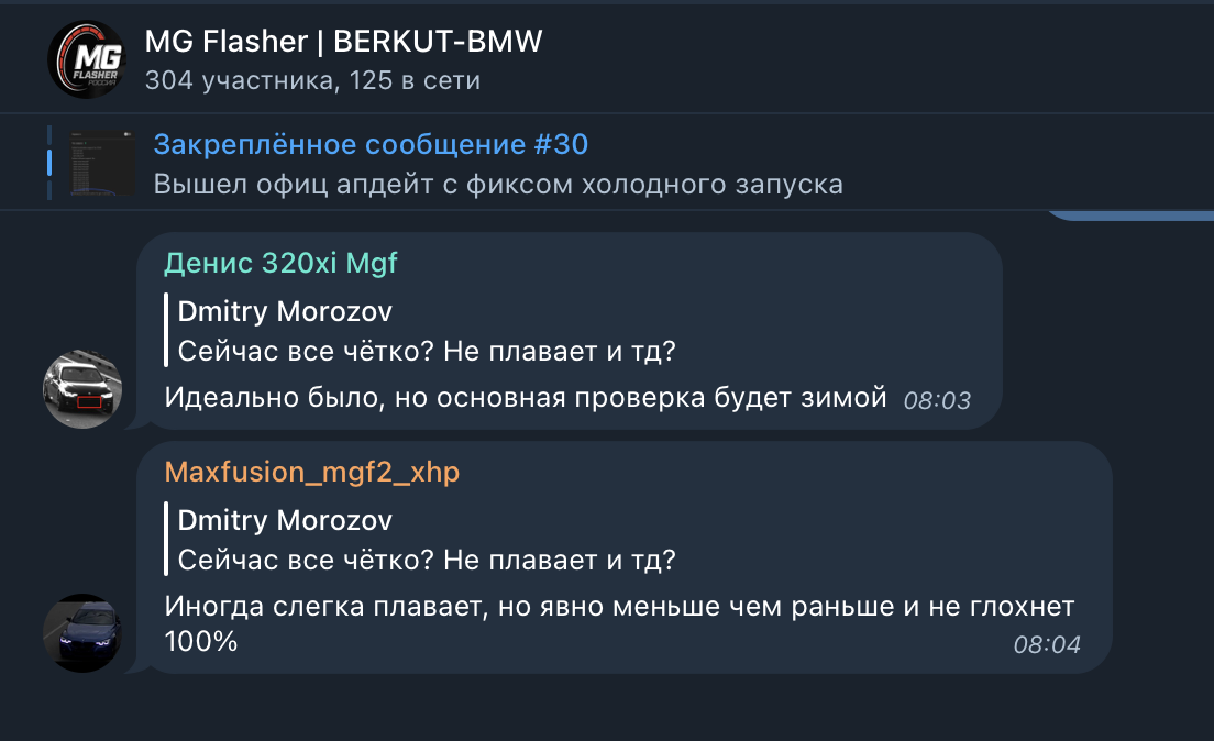 Всех наших клиентов мы добавляем в закрытую группу. На текущий момент в ней более 250 автомобилей со всего СНГ! Обсуждаем обновления, настройки, делимся опытом, помогаем друг другу, организовываем встречи. Так же у нас есть бот, который в любое время дня и ночи поможет с ответом на основные вопросы.
