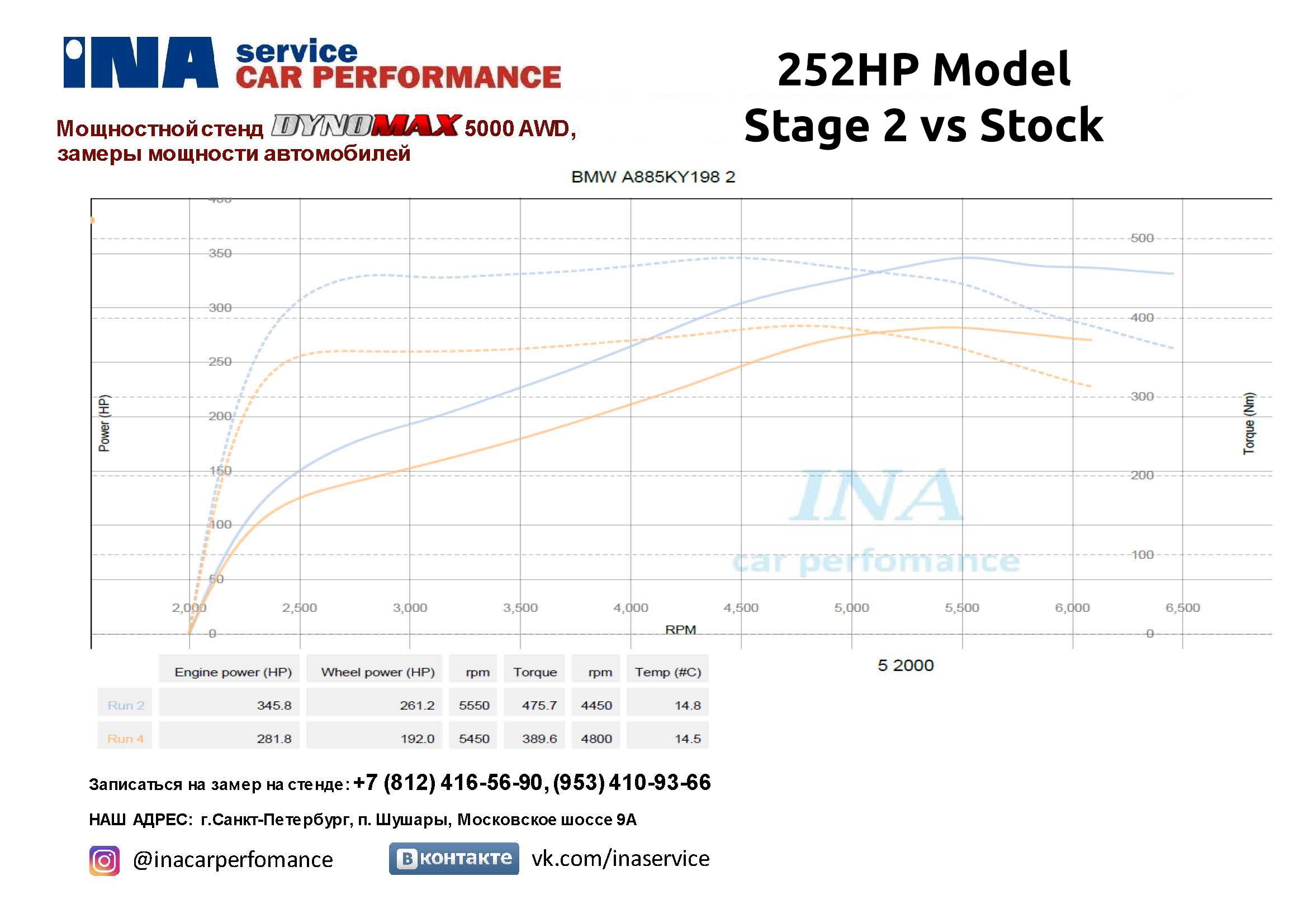 Завод: 252 л.с. & 362 Нм, измерено нами на стенде
